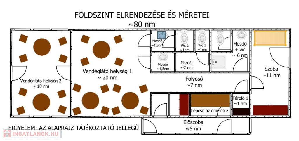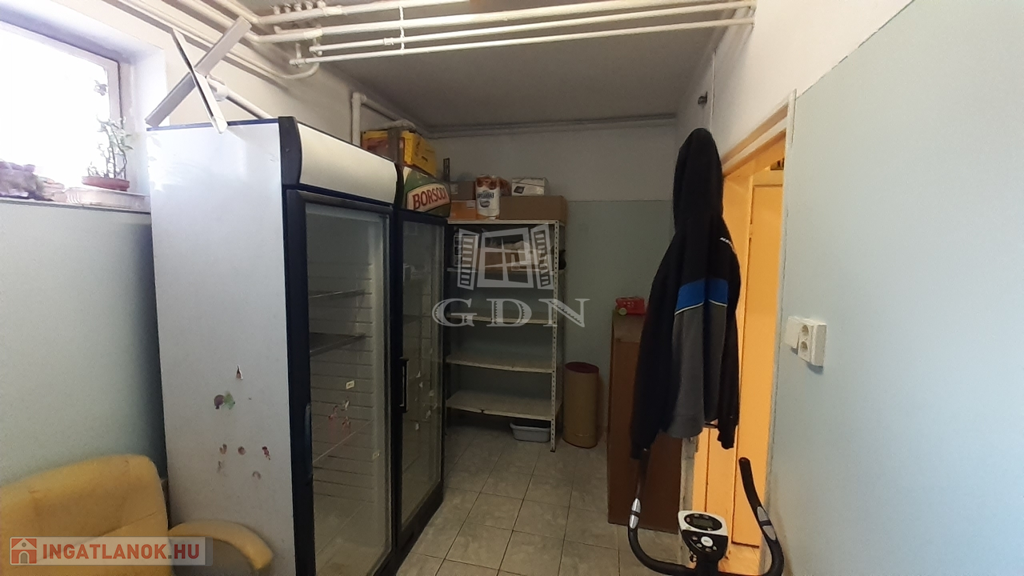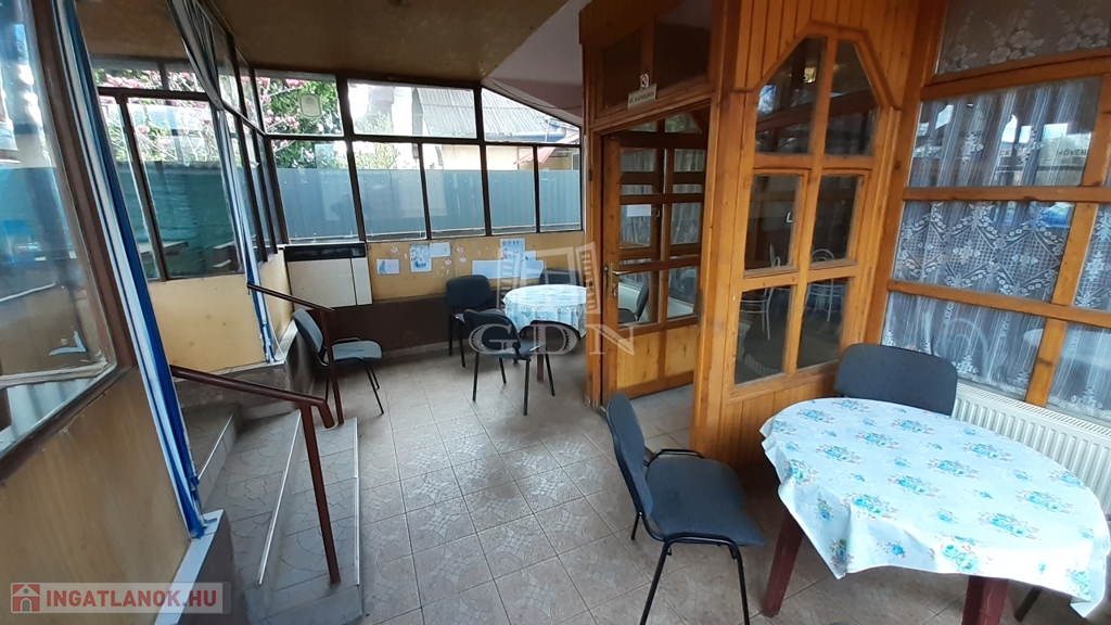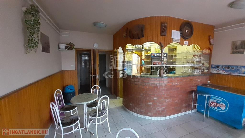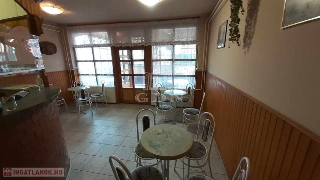 A földszinten található egy régóta működő vendéglátó egység, melyet további üzemeltetésre át lehet venni, de természetesen más jellegű vendéglátásra is átalakítható az épület.