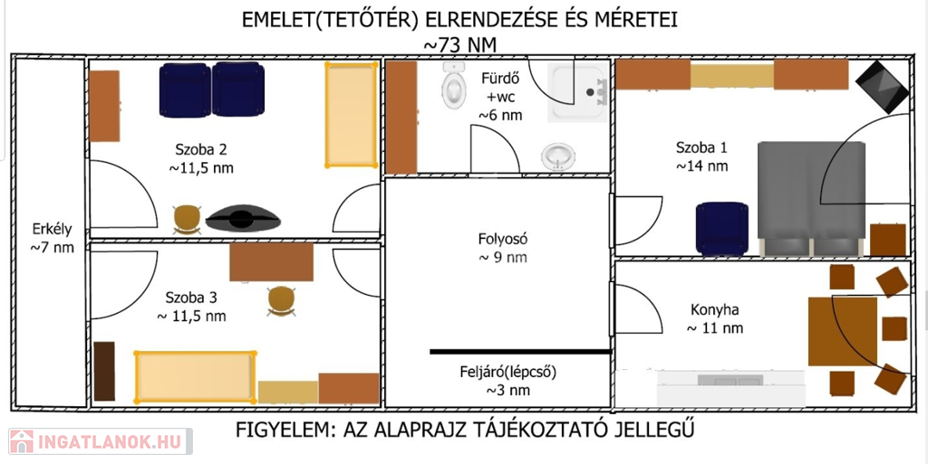 - 3 db szoba,