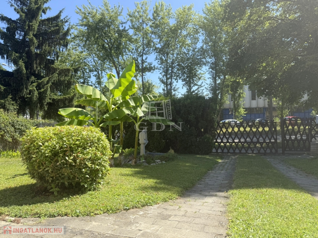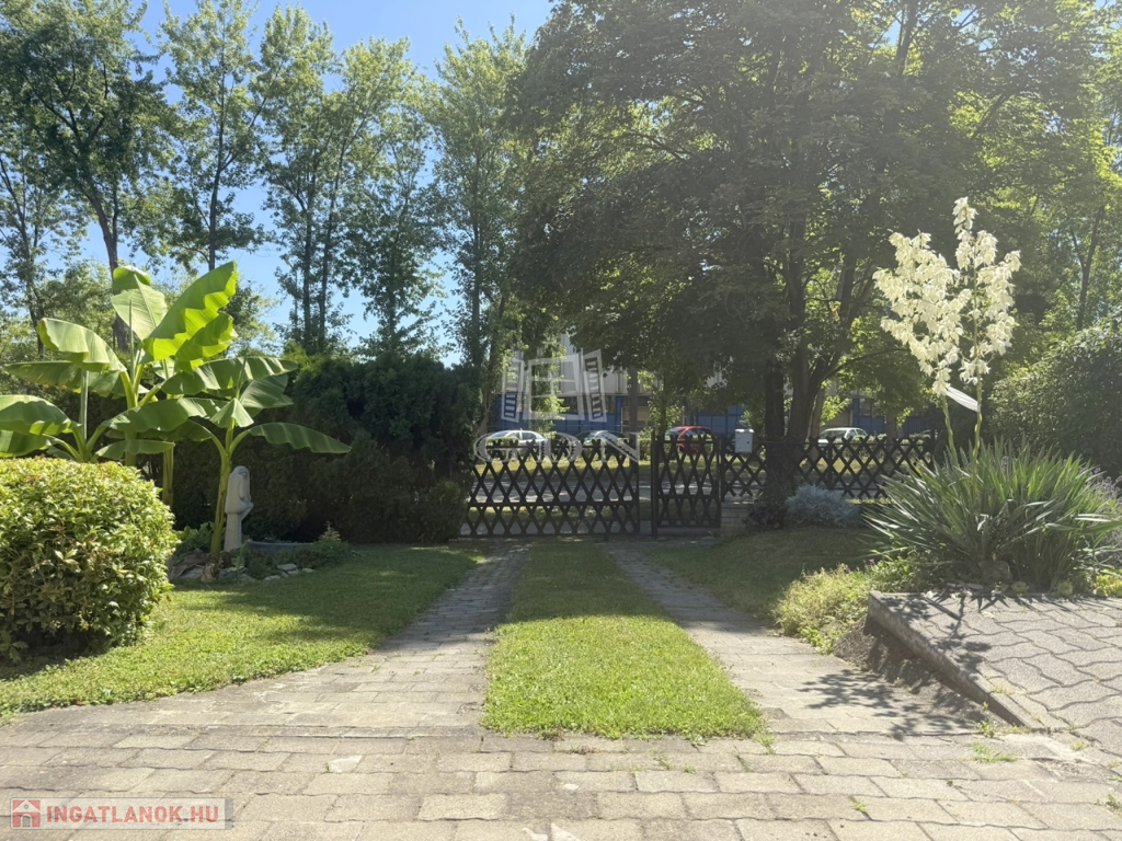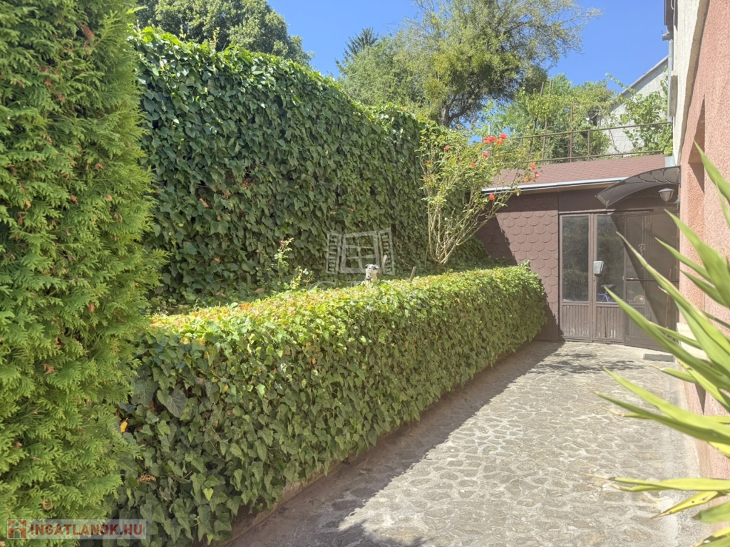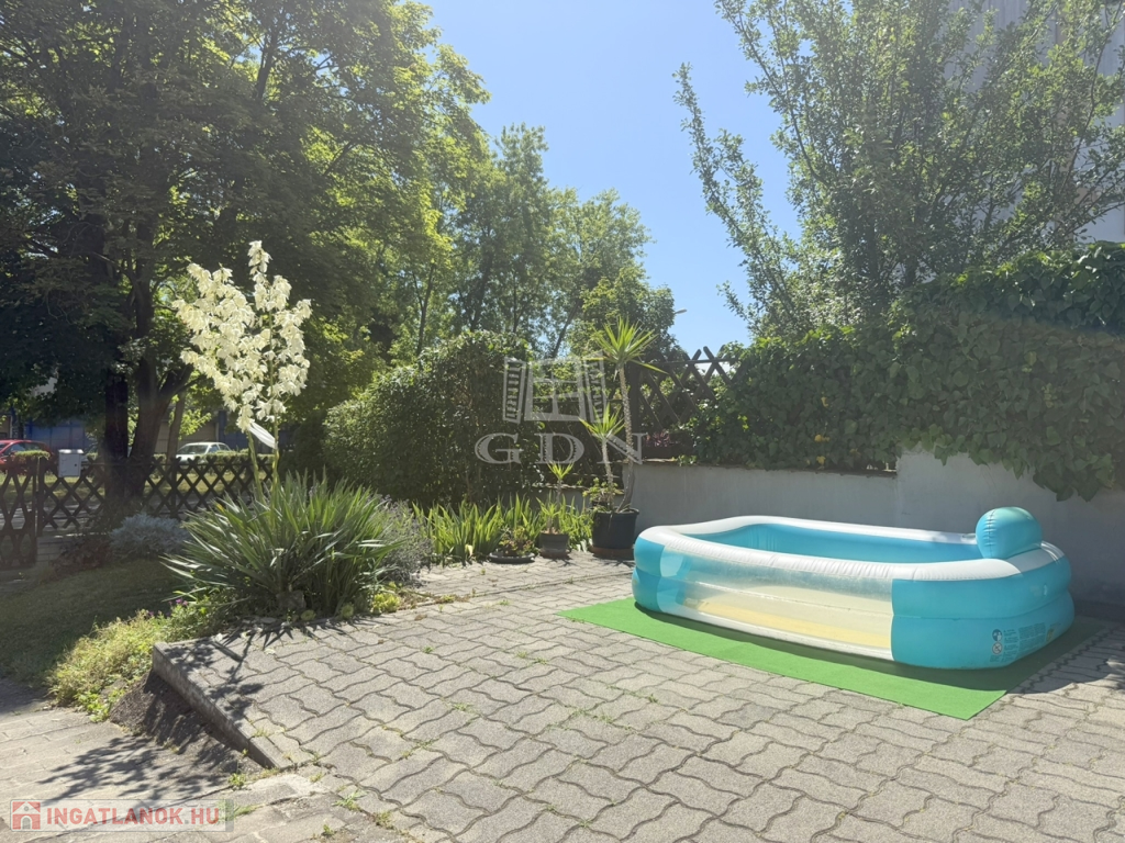 Mérete megfelelő kerti bútorok, játékok, medence ( betonozott rész készült hozzá ) kihelyezésére, azonban nem kell egész napokat fűnyírással tölteni.