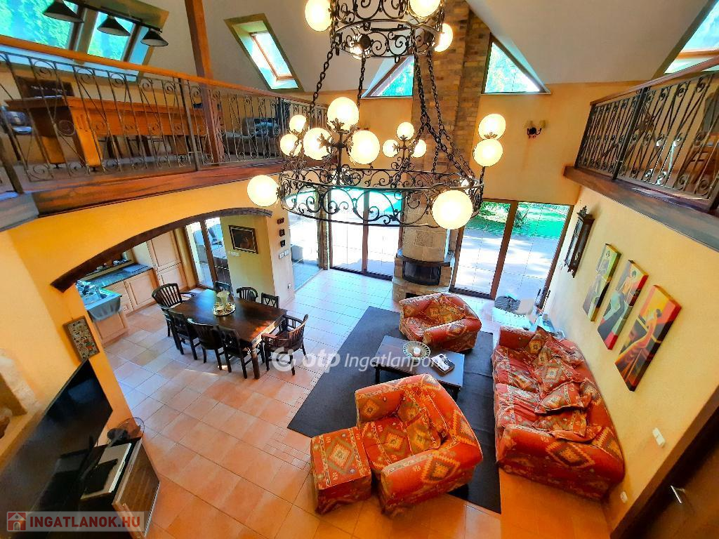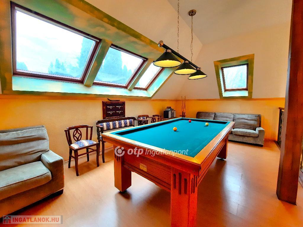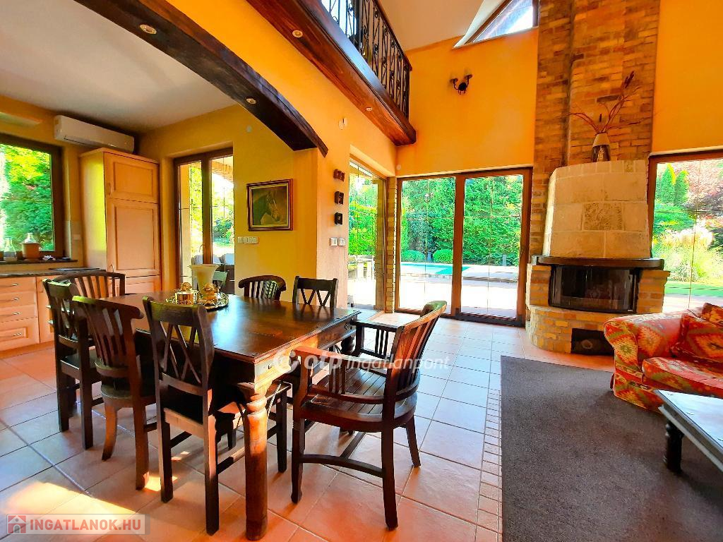 Balaton déli partján, Siófokon, 280 m2-es családi ház eladó. Az ingatlan Szabadifürdő városrész csendes utcájában helyezkedik el, Balaton-part 900 méterre, M7 autópálya csatlakozás 2400 méter távolságban van. Az átlagosnál nagyobb méretű telek területe, ami 3 ingatlan összevonásával alakult ki: 2681 m2. A parkszerű igényes kertépítészeti elemekkel körülvett lakóépület intim külső terekkel kapcsolódik a belső lakótérhez. A kertben úszómedence, kerti tó, grillezőhely, kerti lak épített elemek találhatók parkolókkal, kerti utakkal és sétányokkal. A kertfenntartáshoz fúrt kút és automata öntözőrendszer került létesítésre. A telek súlypontjában elhelyezett lakóépület belső terei kedvező benapozást biztosítanak. A három szintes épület földszintjén lakótér teraszkapcsolatokkal és hálószobák vizesblokkokkal, tetőtérben galéria és hálószoba funkciók vizesblokkal kerültek kialakításra. A pinceszinten kazánház és tároló kapott helyet. A belső terek egyedi építészeti megoldásokkal kivitelezettek, igényes felületekkel, burkolatokkal. A villaépület alkalmas állandó lakhatásra vagy nyaralás céljára is. Az ár tartalmazza a teljes berendezést. Bővebb információért keressen telefonon!