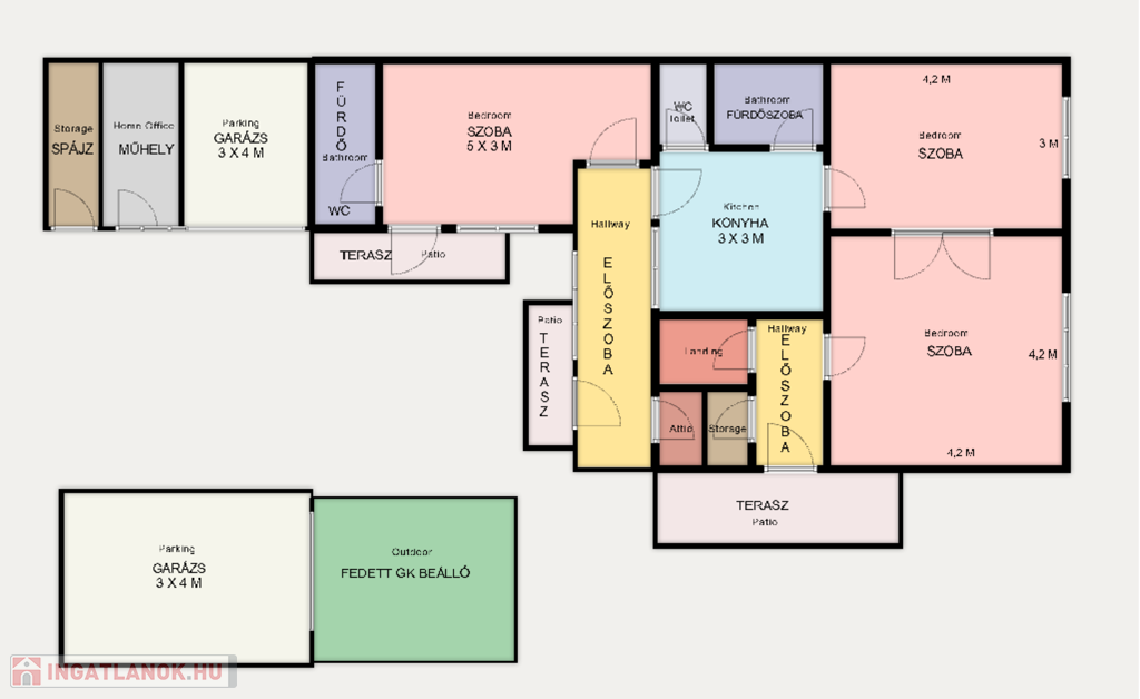 - Garázs 2 db (12 és 10 m2)