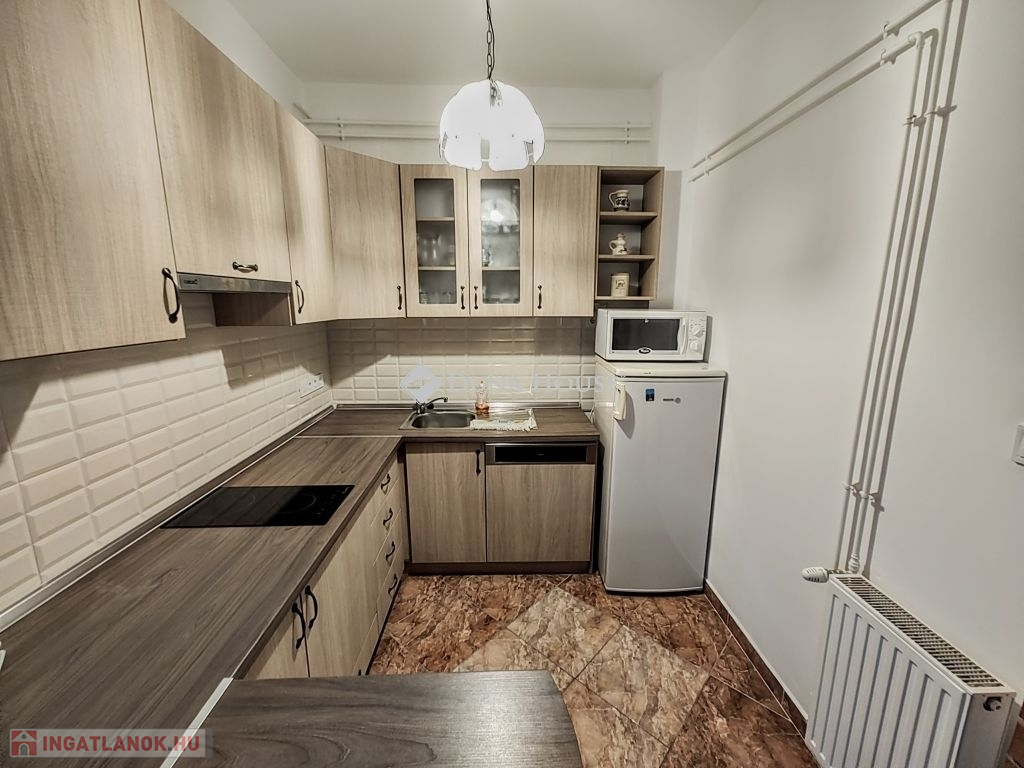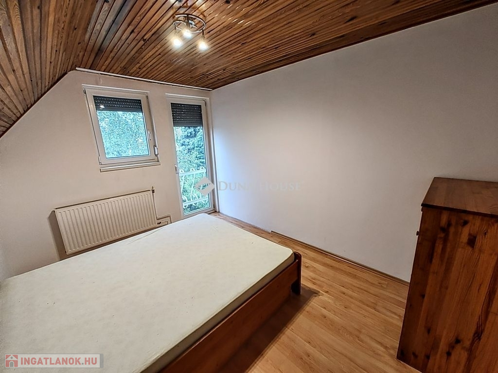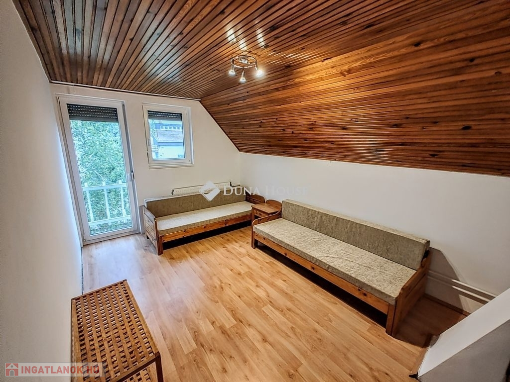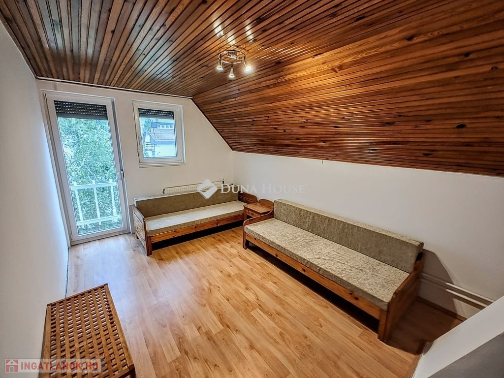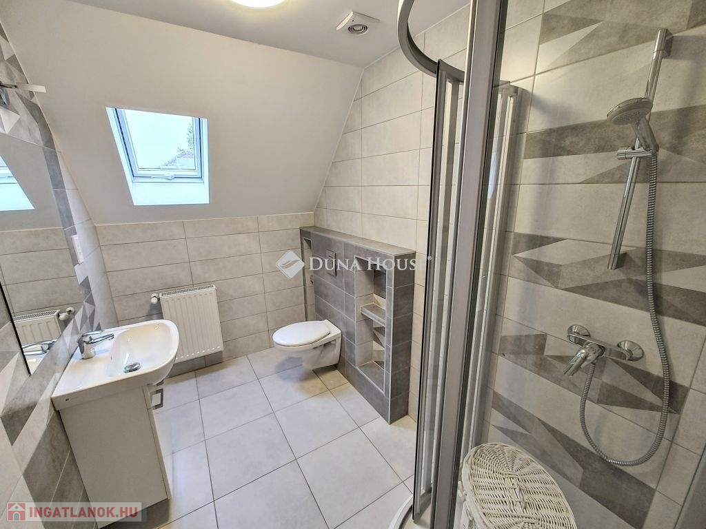 A földszinten tágas nappali, részben szeparált, teljesen gépesített konyha (indukciós főzőlap, mosogatógép, külön hűtő, mikró), valamint fürdőszoba épített zuhanyzóval és külön WC található. Az emeleten a tetőtérben egy társalgótérből nyílik három külön bejáratú hálószoba és egy második fürdőszoba WC-vel és nagyméretű, 90x90-es sarokzuhanyzóval.