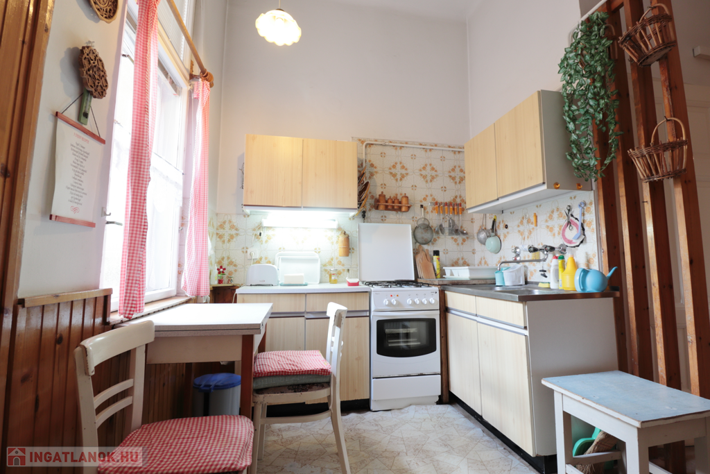 A lakásban két utcafronti nagy szoba, egy közlekedő folyósó, konyha, kamra, fürdő és különálló WC található. A társasházi lakás egyedi elszámolású, fűtése radiátorkörös gázkazán. A lakáshoz tartozik a társasházi alapító okirat szerinti önálló garázs, tároló és saját kicsi kert. A lakás tehermentes és azonnal birtokbavehető. Hitel felvételével is megvásárolható ingatlan, kérje személyre szóló bankfüggetlen kalkulációját az irodától!
