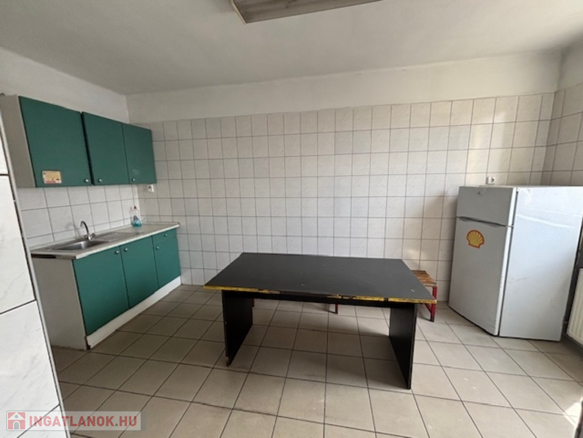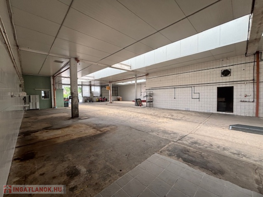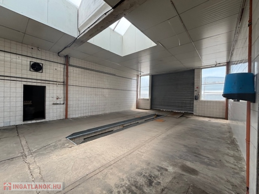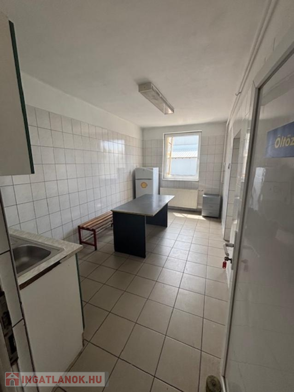 700 m2-es csarnok 5 m belmagassággal, szociális helységekkel, öltözővel rendelkezik.