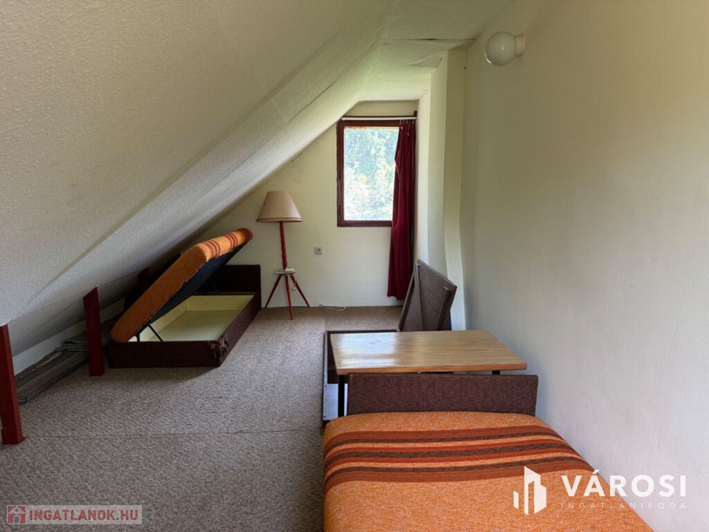 Az épület kétszintes, átlagos állapotú, ideális választás azoknak, akik szeretik a természet közelségét és a zöld övezet nyugalmát. A nyaralóban egy szoba, egy nappali és egy fürdőszoba található, melyek mind berendezettek, így az ingatlan azonnal használatba vehető. Az alacsony fenntartási költségeknek köszönhetően ez a nyaraló hosszú távon is kiváló befektetés. Az ingatlanban a közművek közül a víz és az áram van bent, ez utóbbi 16 A teljesítménnyel és éjszakai áram lehetőséggel. Amennyiben fatüzelésben gondolkozik az új tulajdonos, az is lehetséges, hiszen a kémény ki van építve.