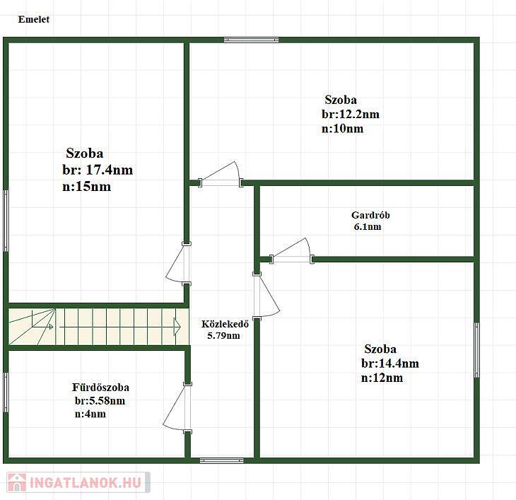 A földszinten egy előszoba, egy közlekedő, egy szoba, egy tágas amerikai konyhás nappali, valamint egy fürdőszoba WC-vel található. Az emeleten három külön nyíló szoba kapott helyet, továbbá egy gardrób és egy második fürdőszoba WC-vel. A ház belső terei világosak, tágasak és jól átgondolt elrendezésűek, így ideális akár nagyobb család számára is.