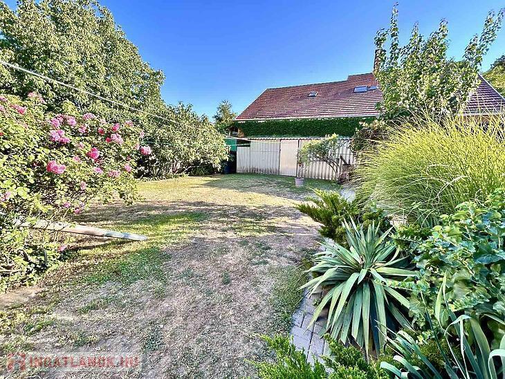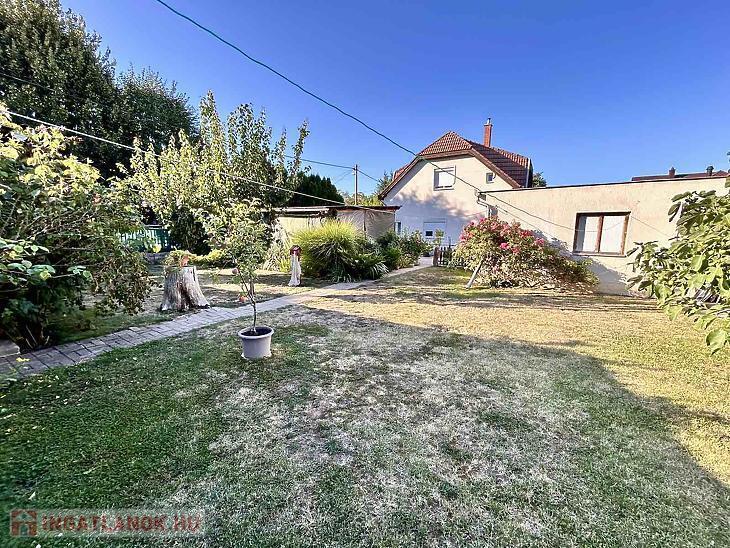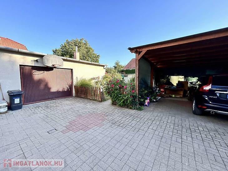 Az ingatlanhoz tartozik egy 48 négyzetméteres garázs, mely alatt egy szintén 48 négyzetméteres pince is helyet kapott – kiváló lehetőség tárolásra vagy akár műhely kialakítására. Az udvaron két férőhelyes fedett kocsibeálló biztosítja a kényelmes parkolást, a tágas kert pedig ideális lehet családi programokhoz, kerti sütögetéshez vagy akár egy saját veteményes kialakításához is.