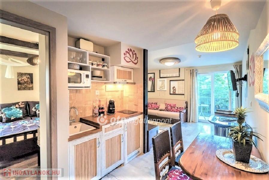 Megvételre kínálok Siófok üdülőövezetében egy 387 m2-es apartmanházat! A 2016-ban épült, folyamatos felújításon, átépítésen átesett 387 m2-es ingatlan jelenleg 9 külön bejáratú apartmanra osztott, melyekből 7 apartmant üzemeltet a tulajdonos, 2 pedig saját használatú. A legnagyobb földszinti lakrészhez saját udvar tartozik. Az apartmanok belsőépítészeti kialakítása, berendezése rendkívül ötletes, igényes. Mindegyik lakrész külön tematika szerint berendezett.