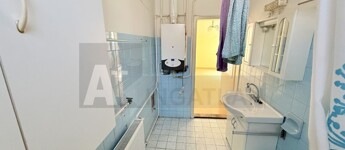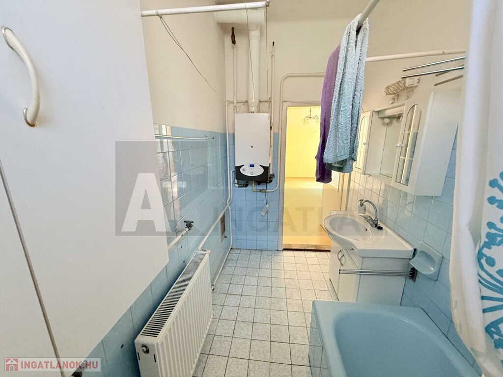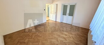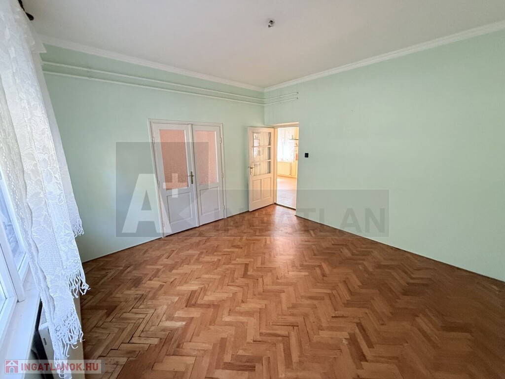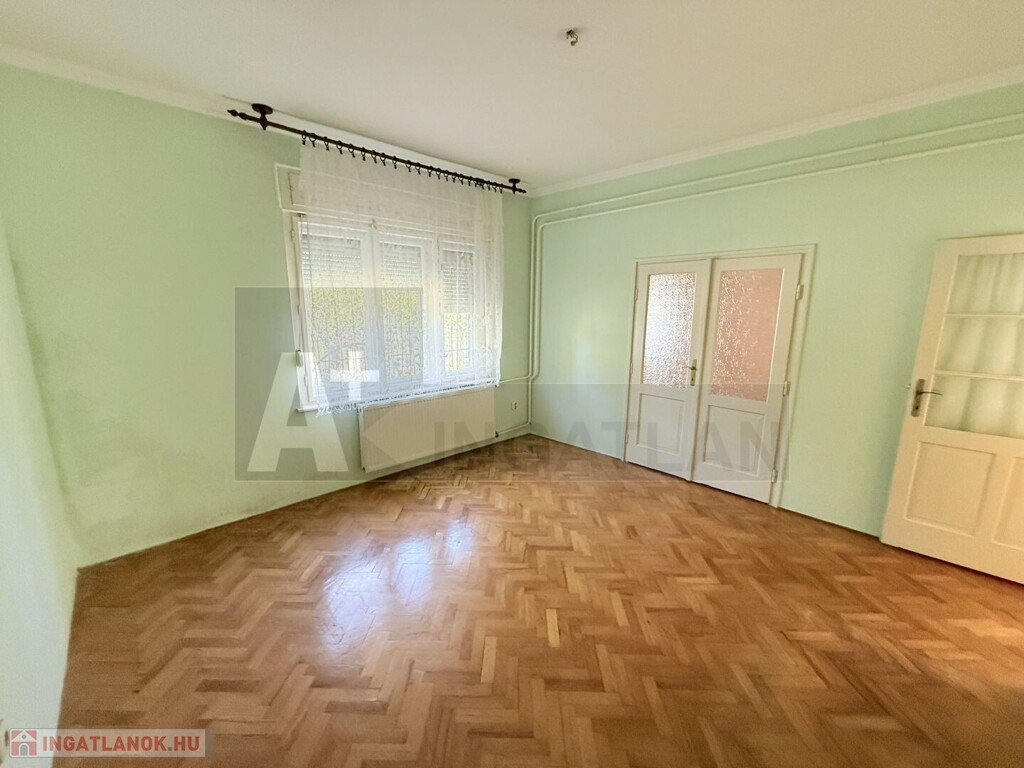 - közös előtérből nyílik a két lakrész, a földszinti : központi helyiség a nappali , innen nyílik a konyha-kamrával , a fürdőszoba-wc-vel és a két tágas , utca fronti , az előkertre és ház előtt kialakított kellemes környezetű rendezett , felújított parkra néz ,