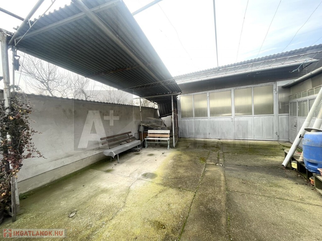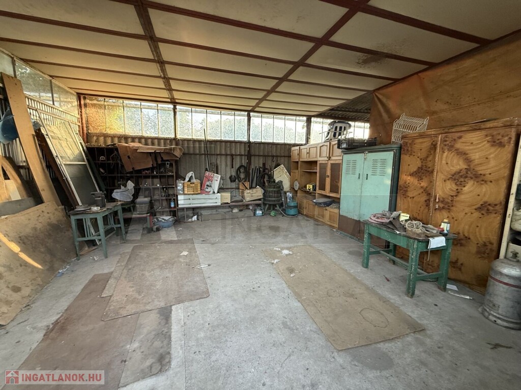 Ezen kívül , az elektromos bejárati kapuval szemben épült a dupla garázs/ műhely ..A két garázs közötti helyiség pedig egy fedett szin... korábbi tulajdonos lakatos műhelyt üzemeltetett ...