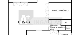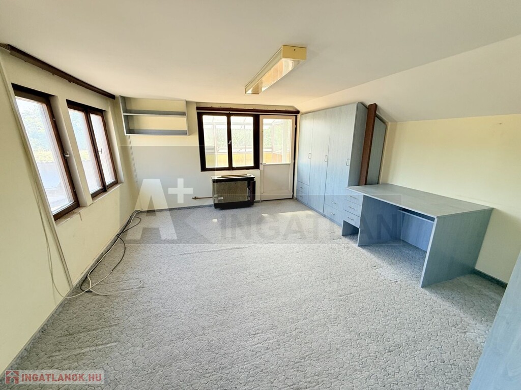 - a házhoz építettek egy 40 m2-es műhelyt , amelynek az emeleti részén lett megépítve a másik lakás : amerikai konyhás nappali + hálószoba nagy terasszal , fürdőszoba- wc-vel és egy gardrób , ahol akár még egy szoba kialakítható...