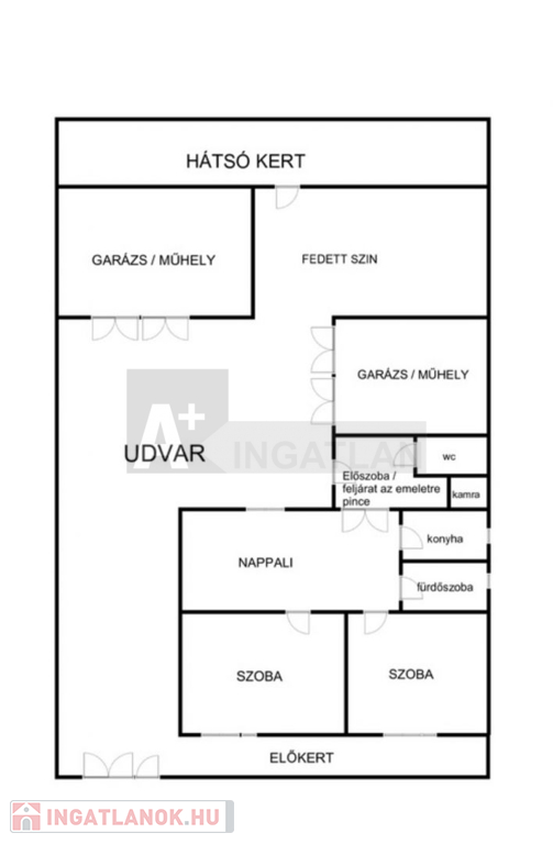 A tégla építésű kibővített " kádár kocka " tipusú ház jelenlegi elrendezése szerint :