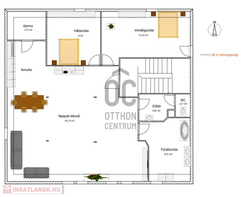 Az ingatlan állapota kiváló, a modern, amerikai konyhás elrendezés a kényelmet és a stílust ötvözi.