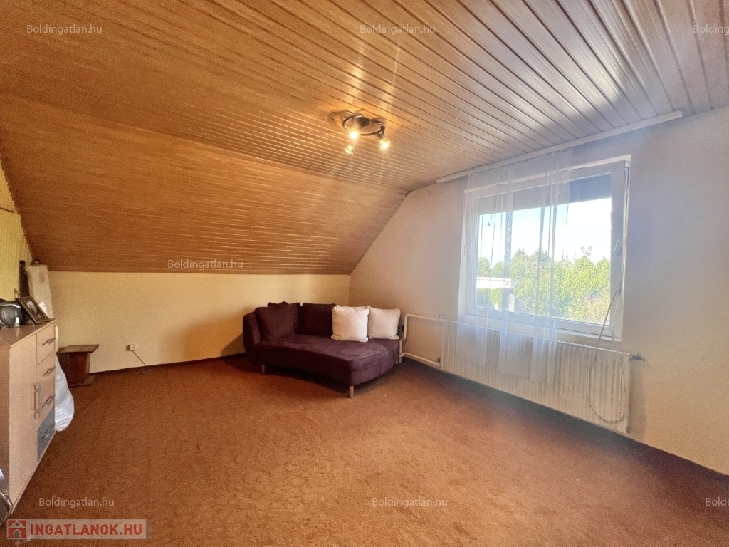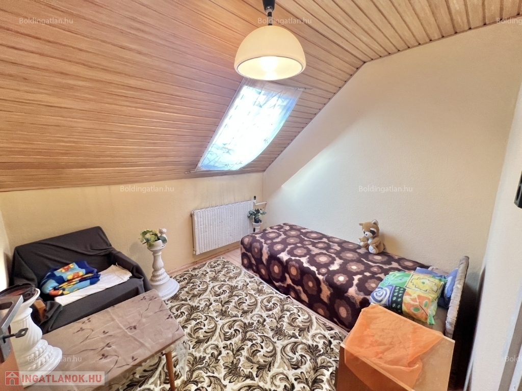 Kaposvár kedvelt városrészében Kaposfüreden, kifejezetten csendes utcában lévő – a képeken látható műszaki állapotú - 113 m2-es ikerház eladó. A lakóház alsó szintjén előtér, nappali-utca felé néző terasszal, közlekedő, konyha, kamra, fürdőszoba, wc helyiségek kerültek kialakításra. A tetőtérben 1 hálószoba-erkély, további 1,5 szoba, fürdőszoba-wc helyiségek kerültek kialakításra. A szuteréneben egy személyautónak alkalmas 16,2 m2-es garázs, illetve 36 m2-es műhely-tároló helyiség van. Az épület fűtése gázkazánnal megoldott, a melegvíz ellátást villanybojler biztosítja. Az udvarban szerszámok-kisebb kerti gépek tárolására alkalmas melléképület, illetve kerti csap található. Telek: 1.082 m2