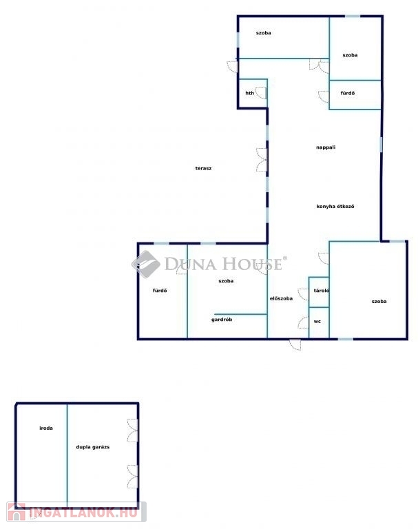 Az ingatlanhoz tartozik egy két autó beállásos garázs, valamint egy irodahelyiség.