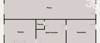 Az alsó, részben szuterénszinten, 102 m2 területen garázs, nyári konyha, kazánház és pince létesült.