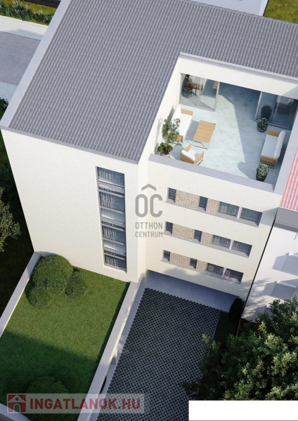 Földszinten egy 33 m2 - es iroda + a gépkocsi parkolók kerülnek kialakításra, 1 - 2 - 3 emeleten szintenként 2 db lakás, + a 4. emeleten egy tetőtéri, nettó 70 m2 - es iroda kerül megépítésre.