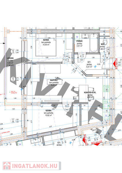 Eladó egy 56 m2-es, nappali + 2 hálószobás, új építésû lakás 9 m2-es terasszal a belváros szívében eladó.