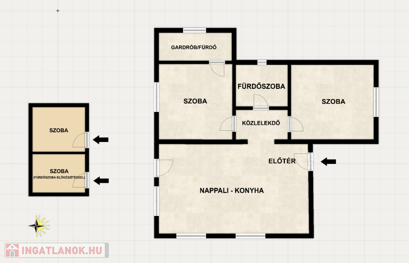 -Nettó 19 m² melléképület: 2 szoba + fürdő előkészítéssel