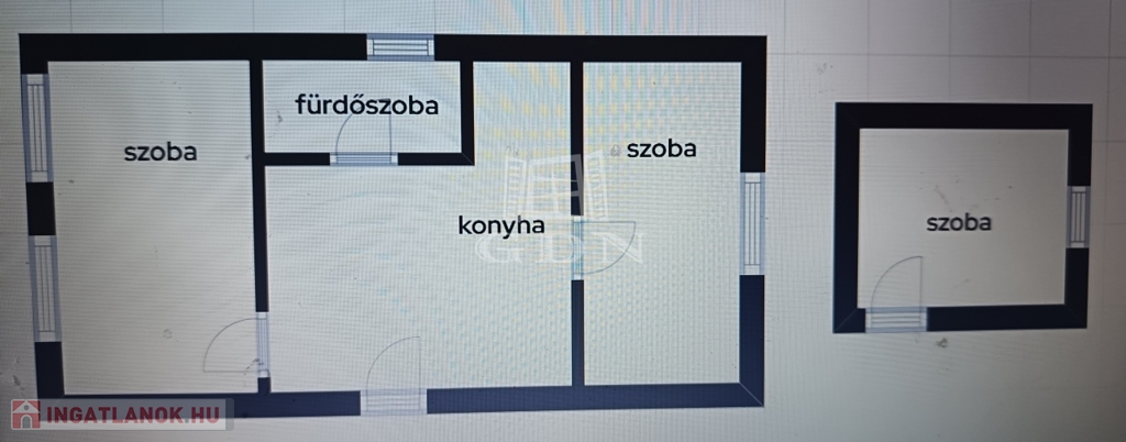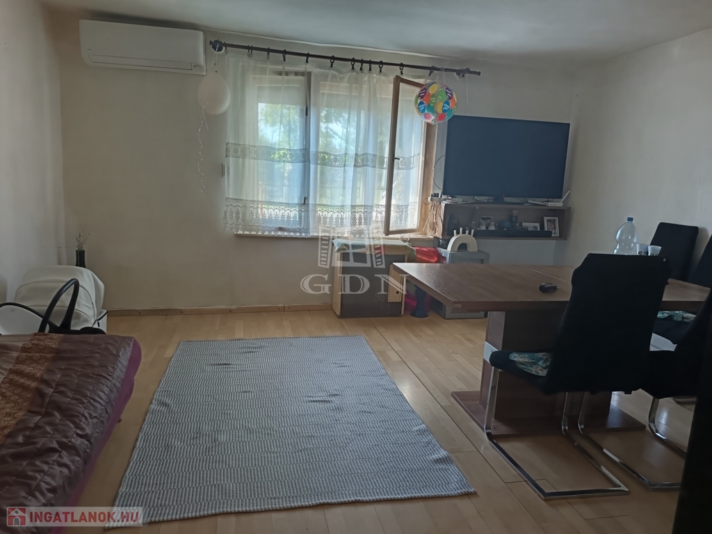 60 nm alapterületen konyha, szoba, előszoba, fürdőszoba, wc-vel.