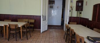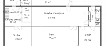 -a nagyobb lakrész 170 m2, található itt egy előtér, egy tágas vendégfogadó helyiség, konyha, mosogató helyiség, férfi-női-, és személyzeti mosdó és öltöző. Viszont pár éve visszaminősítették lakóházzá, ezért némi átalakítás után akár 2 családnak is kényelmes otthona lehet (az aktuális földhivatali nyilvántartás szerint az egész ingatlan "Kivett lakóház, udvar, gazdasági épület"). A ház alatt tárolásra alkalmas száraz pince húzódik. Az udvaron kerti konyha, sütögető, egy nyitott és egy fedett terasz, raktár, 2 garázs, fedett kocsibeálló is található. Ha mégis úgy dönt leendő tulajdonosa, hogy üzletet, pizzaműhelyt, vendéglőt, cukrászdát, vagy kávézót, egyéb közösségi teret szeretne nyitni újra az ingatlanban, könnyűszerrel megteheti, a feltételek adottak hozzá.