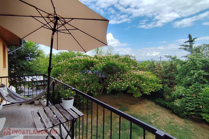 Családi házas övezet csendes zsákutcájában, 2 lakásos épületben, emeleti, napos, belső két szintes lakás saját kertrésszel és gépkocsi beállóval.