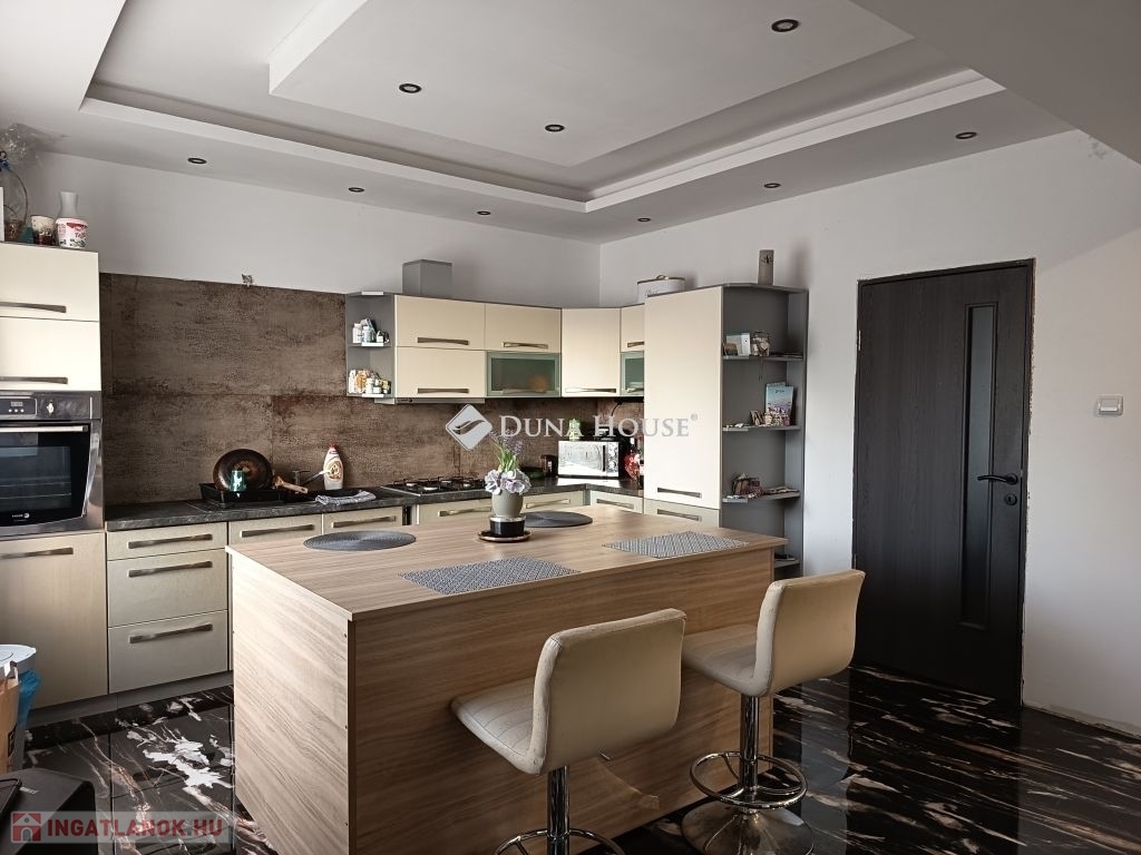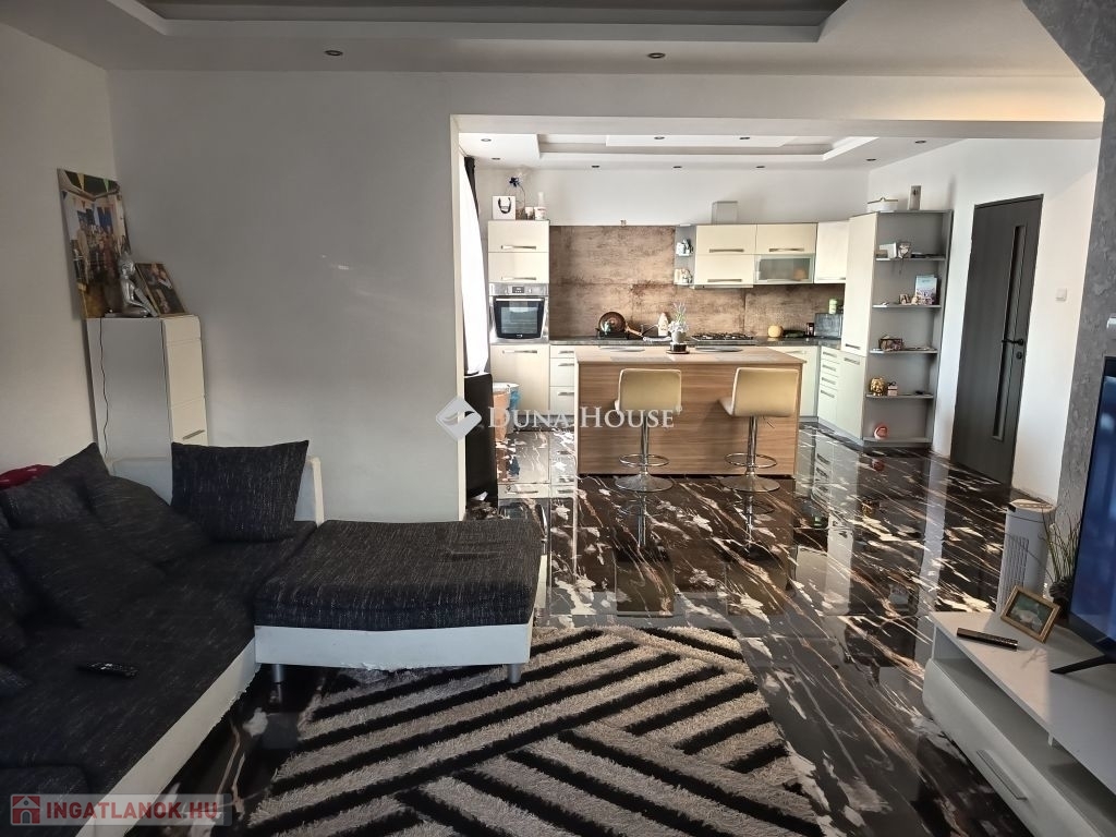 Az alsó szinten amerikai konyhás nappali, az emeleten 2 külön nyíló szoba és 2 fürdőszoba található./ a két szinten/