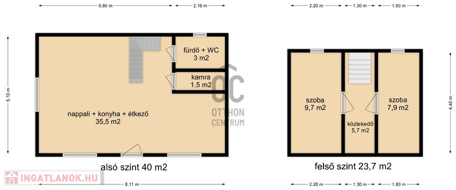 -Fűtés: központi gázfűtés + klíma (hűtés-fűtés funkció)