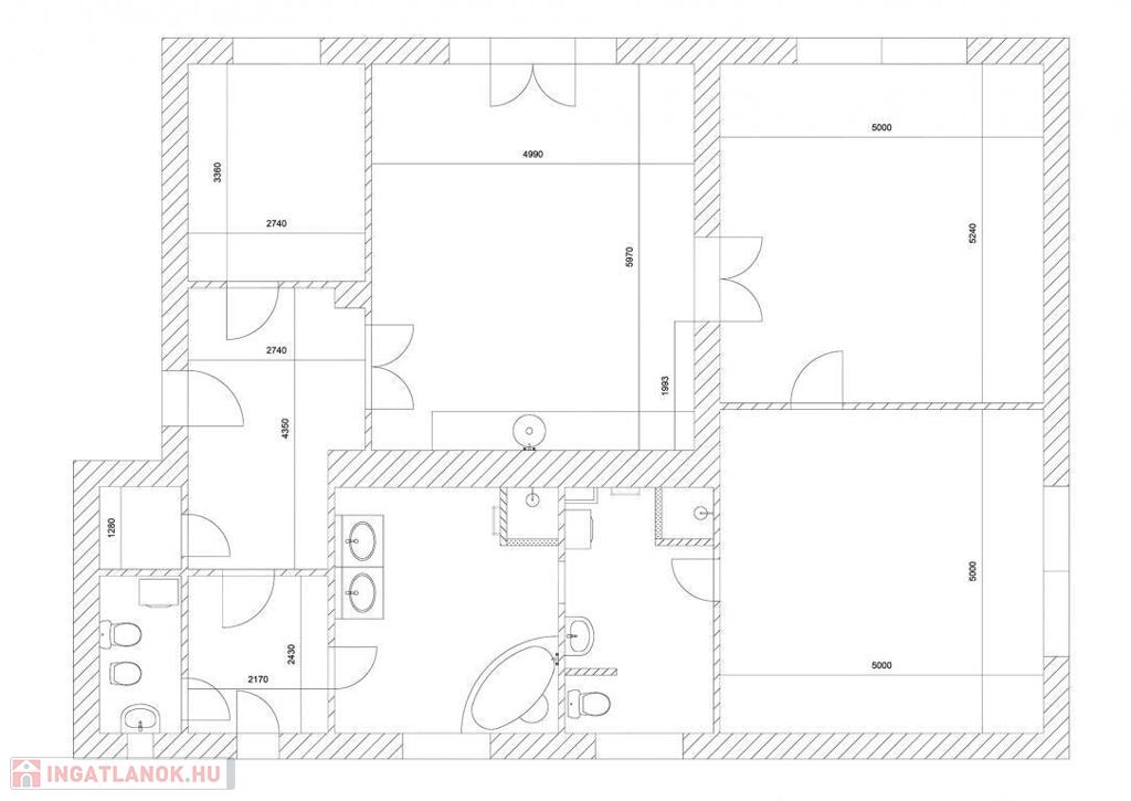 Egy plusz mellékhelyiség: mosdó, WC + bidé, mosógép kiállás 3,1 nm-en