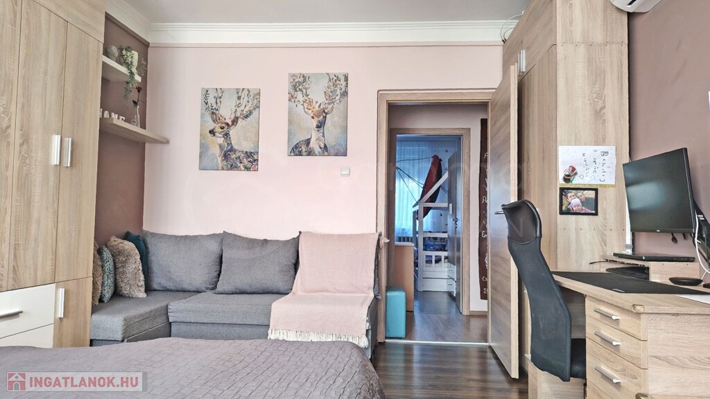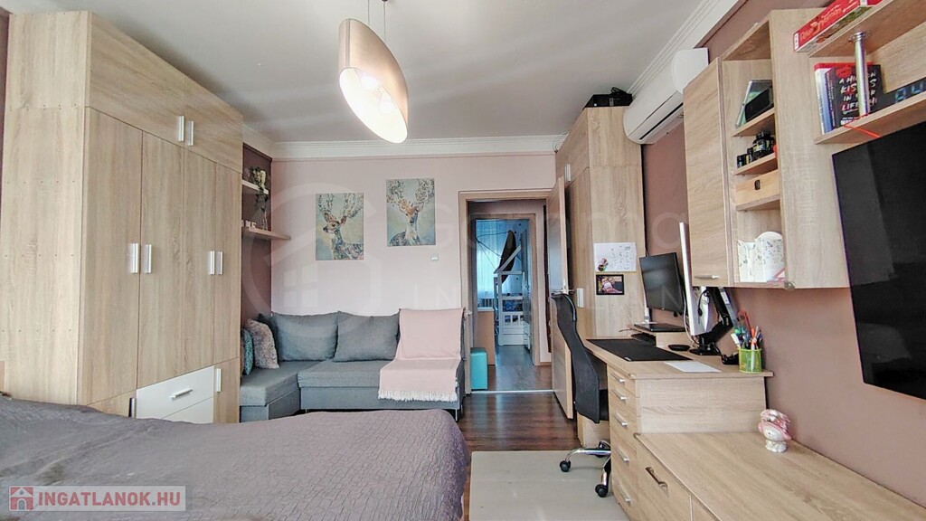 - A két külön nyíló szoba festett, minőségi laminált padlóval burkolt. A tágasabb szobából nyílik az erkély, bükki panorámával. A beépített gardróbszekrény praktikus kialakítású, a padlótól a plafonig kihasználja a teret, így kivételesen jó tárolási lehetőséget biztosít ruháinak és személyes tárgyainak, segítve a rend fenntartását.