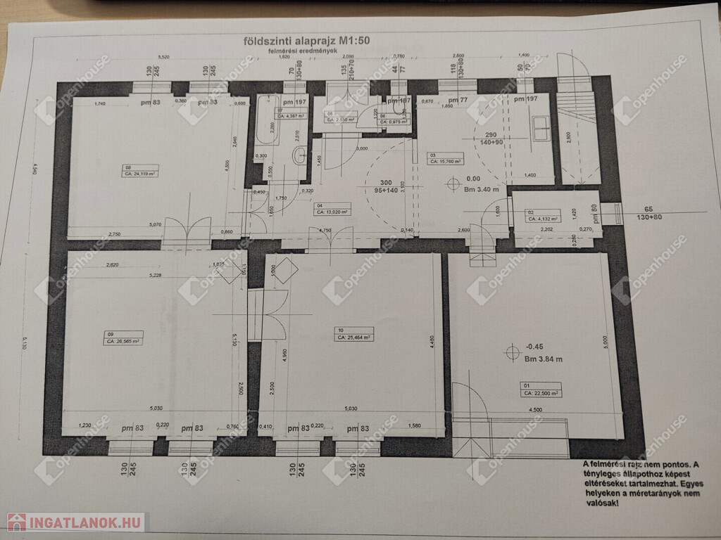 - helyiségek: 3 tágas szoba, közlekedők, konyha, kamra, előszoba, háztartási helység, külön wc, fürdőszoba + wc, teraszok, pince az egész ház alatt és magas tetős padlástér ami beépíthető.Tető már kialakítva tetőtéri szobákra-ablakok behelyezve