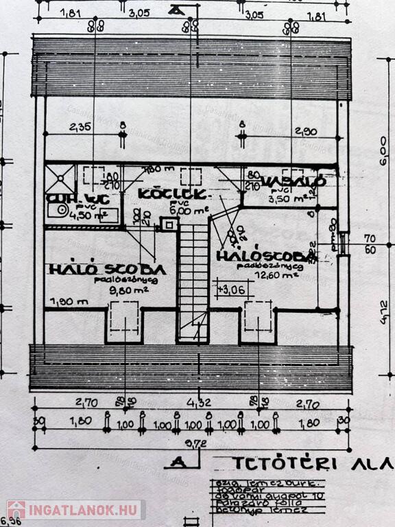 A lakótér a földszinten (79 m2) és a tetőtérben található