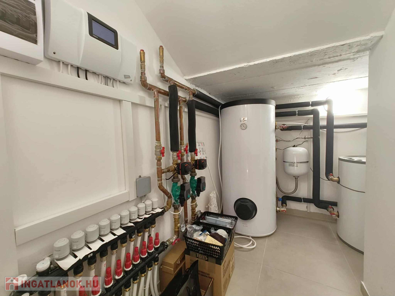 Az épület fűtését (minden helységben padlófűtés) 1db 11 kW-os levegős hőszivattyú biztosítja Nappaliban és a szobákban split klíma biztosítja a hűtést