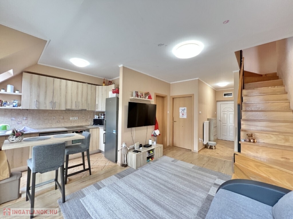 Kaposváron a belvárosban, a Németh I. fasor utcában - közvetlenül a kórház közelében - található rendezett társasház 2. emeletén lévő 62 m2-es, ideális elosztású, jó állapotú két szintes lakás eladó. A lakás alsó szintjén előszoba, nappali-étkező-konyha, 1 szoba, erkély, fürdőszoba, wc helyiségek találhatóak. A felső szinten kisebb előszoba, 2 szoba, fürdőszoba-wc kerültek kialakításra. A lakás rezsi költsége nagyon kedvező, a fűtés és meleg víz ellátást házközponti fűtés biztosítja, továbbá a tetőtérbe légkondicionálót szereltetett fel a tulajdonos. A lakáshoz tartozik tároló is, illetve a társasháznak nagyon szép, rendezett udvara van, ahová 1 személyautóval ingyenesen tud parkolni a lakás tulajdonosa. Energetikai besorolás: E