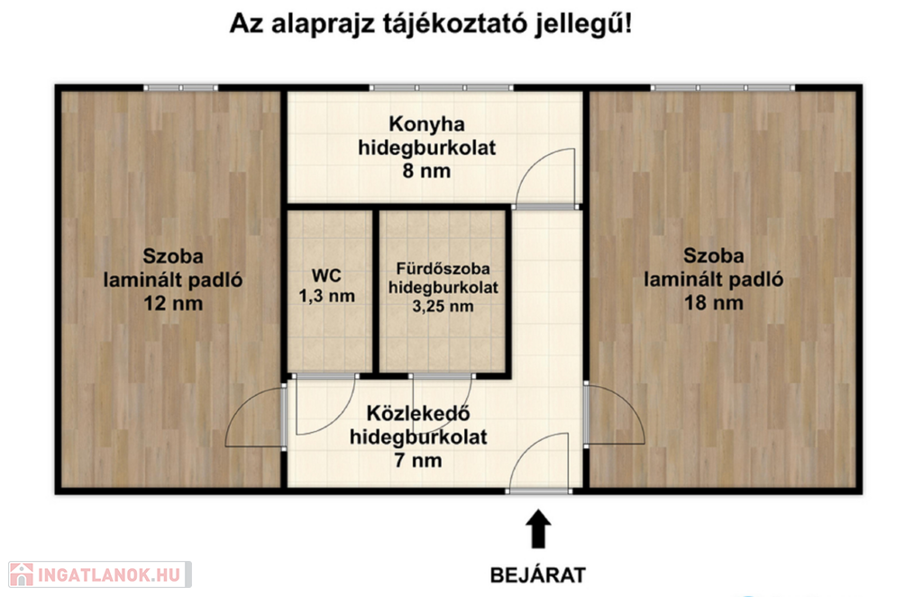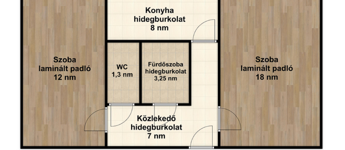 - Laminált padló a szobákban, a többi helyiség hidegburkolatos.