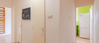 - Beépített szekrények a nappaliban és a közlekedőben, amelyek praktikus tárolást biztosítanak.