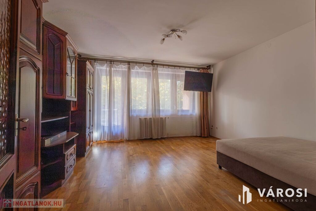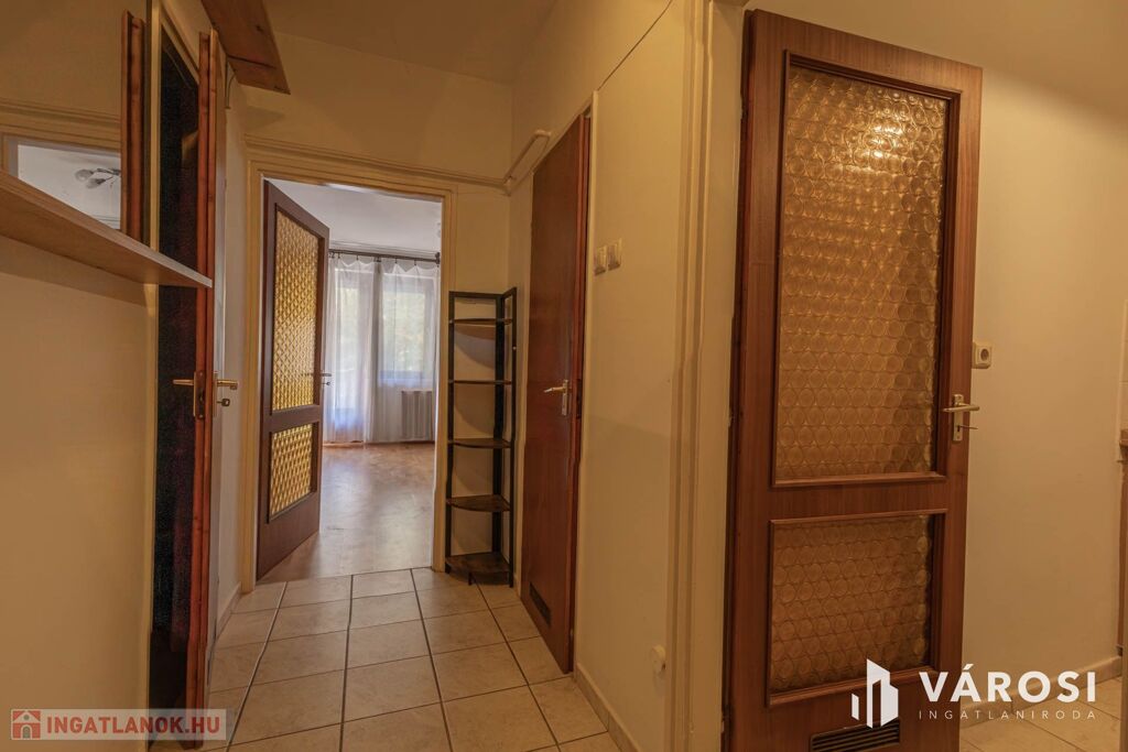 A lakás a társasház első emeletén található, függőfolyosóról közelíthető meg. Elrendezését tekintve egy szobás, külön konyhával és fürdő-wc-vel. A szobához tartozó nagy erkély udvari tájolású, jól hasznosítható. A fűtésről távhő gondoskodik, a radiátorokon hőmennyiségmérő található, így biztosítva az állandó kellemes hőmérsékletet és a gazdaságos üzemelést.