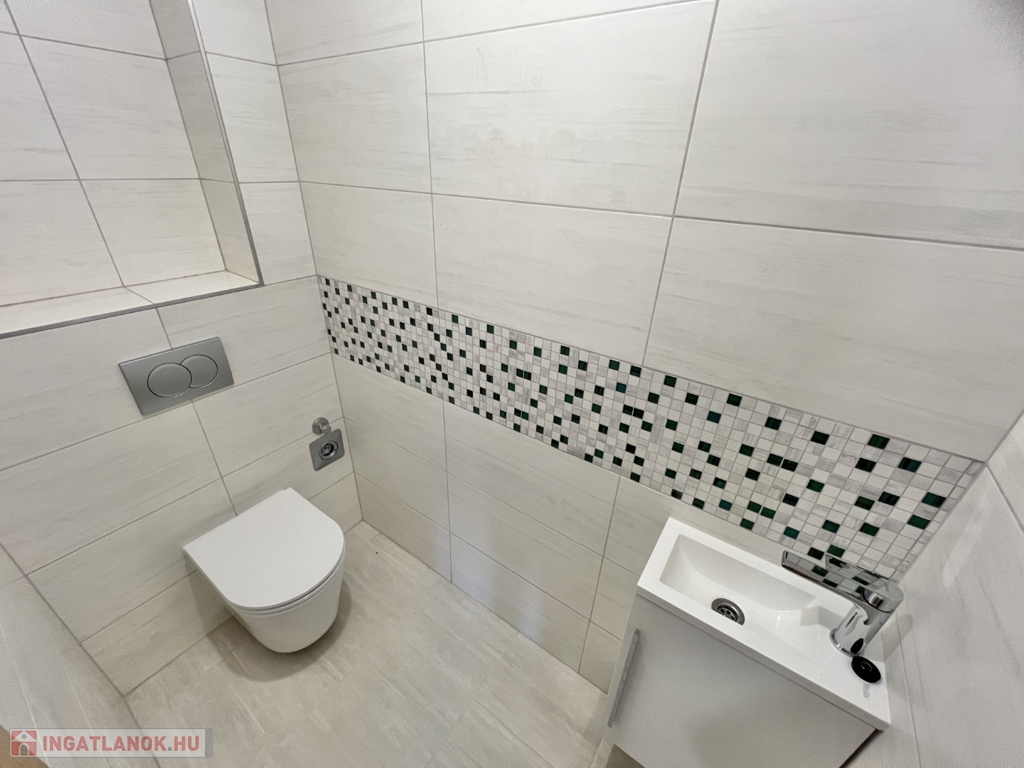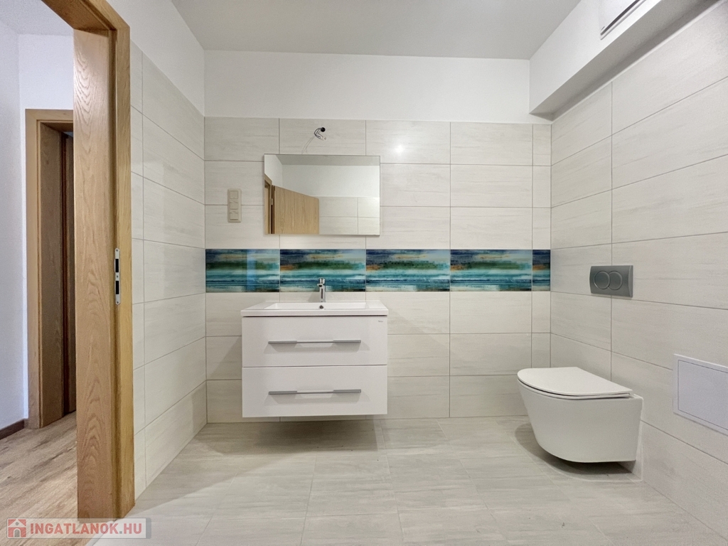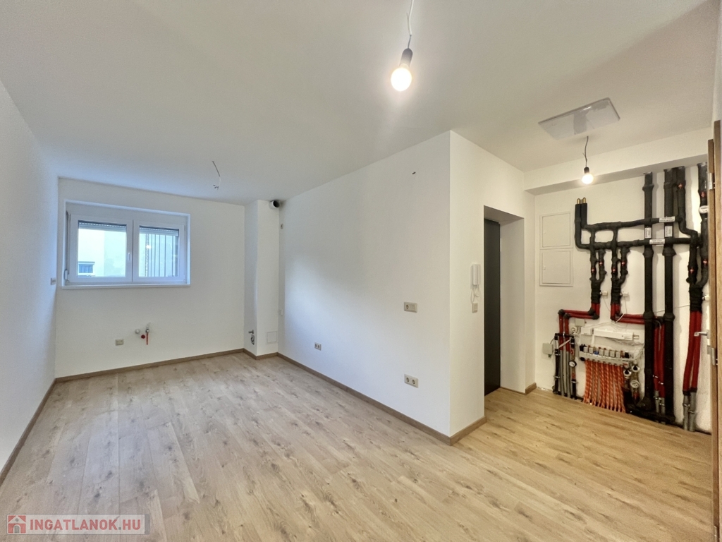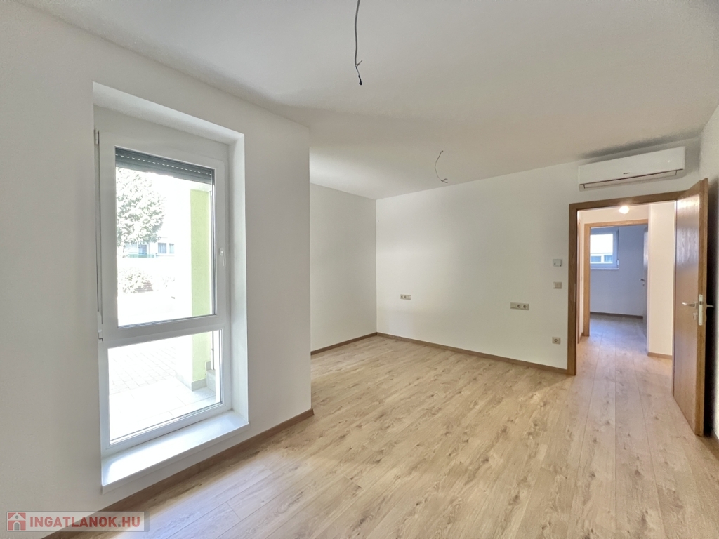 Kaposváron a belvárosban, a Dési Huber utcában - a kórház közelében - igényes kivitelben épült, modern architektúrájú 30 lakásos, új társasház földszintjén, 81 m2-es lakás, 16 m2-es terasszal együtt eladó. A lakásban nappali-étkező-konyha, 2 szoba, közlekedő, szélfogó, fürdőszoba, wc helyiségek kerültek kialakításra. Az épület korszerű energetikájú, a lakás fűtés levegő-víz hőszivattyús Nibe fűtésrendszerrel - padlófűtéssel, a fürdőszobában elektromos törölközőszárító radiátorral - van megoldva, továbbá a lakás hűtése fan-coil Gree rendszerrel történik. A lakás fűtéséhez, vagy hűtéséhez szükséges villamosenergiát az épület tetején elhelyezett napelemek biztosítják, a társasházban központi vízlágyító berendezés is beszerelésre került. A fürdőszobában magas minőségű Wellis szerelvények kerültek beszerelésre. A lakáshoz igény esetén 3.000.000.- Ft-ért az épület zárt udvarában 1 személyautó részére parkolóhely megvásárolható! Az ingatlan megvásárlásához CSOK igényelhető!
