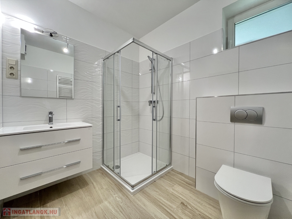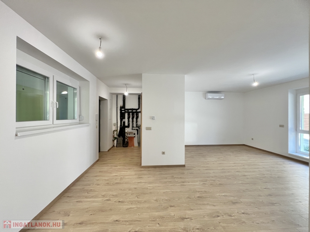 Kaposváron a belvárosban, a Dési Huber utcában - a kórház közelében - igényes kivitelben épült, modern architektúrájú 30 lakásos, új társasház földszintjén, 86 m2-es lakás, 20 m2-es terasszal együtt eladó. A lakásban nappali-étkező-konyha, 2 szoba, közlekedő, szélfogó, fürdőszoba, wc helyiségek kerültek kialakításra. Az épület korszerű energetikájú, a lakás fűtés levegő-víz hőszivattyús Nibe fűtésrendszerrel - padlófűtéssel, a fürdőszobában elektromos törölközőszárító radiátorral - van megoldva, továbbá a lakás hűtése fan-coil Gree rendszerrel történik. A lakás fűtéséhez, vagy hűtéséhez szükséges villamosenergiát az épület tetején elhelyezett napelemek biztosítják, a társasházban központi vízlágyító berendezés is beszerelésre került. A fürdőszobában magas minőségű Wellis szerelvények kerültek beszerelésre. A lakáshoz igény esetén 3.000.000.- Ft-ért az épület zárt udvarában 1 személyautó részére parkolóhely megvásárolható! Az ingatlan megvásárlásához CSOK igényelhető!Energetikai besorolás B