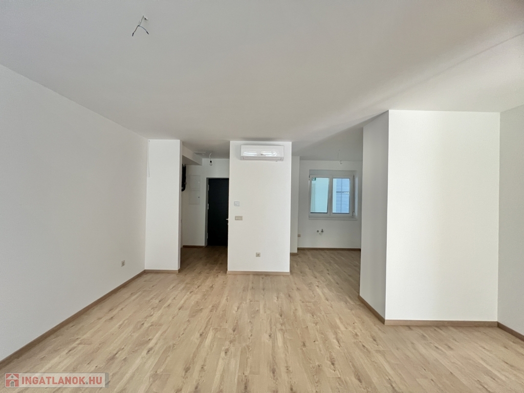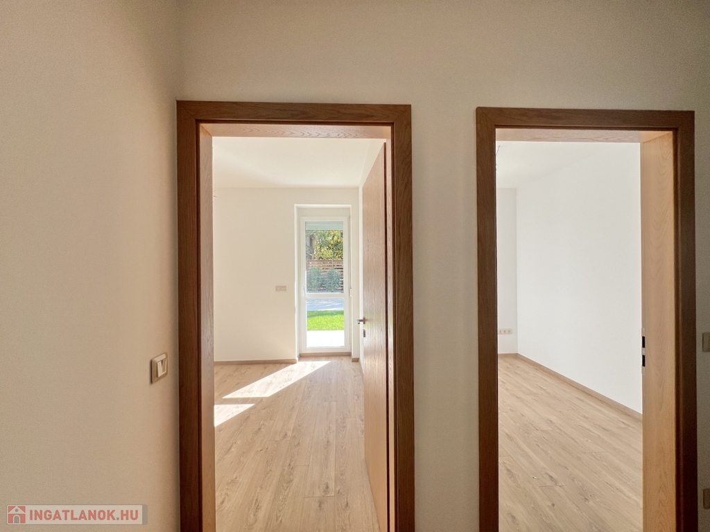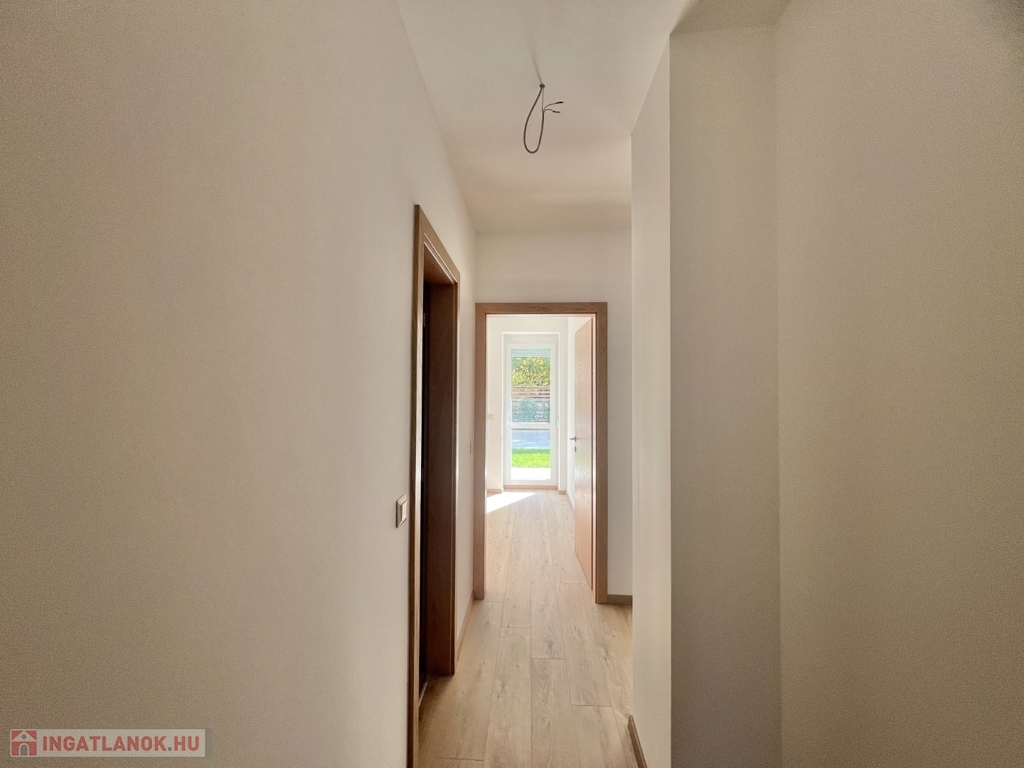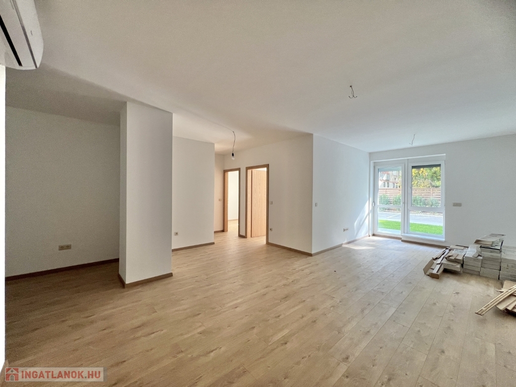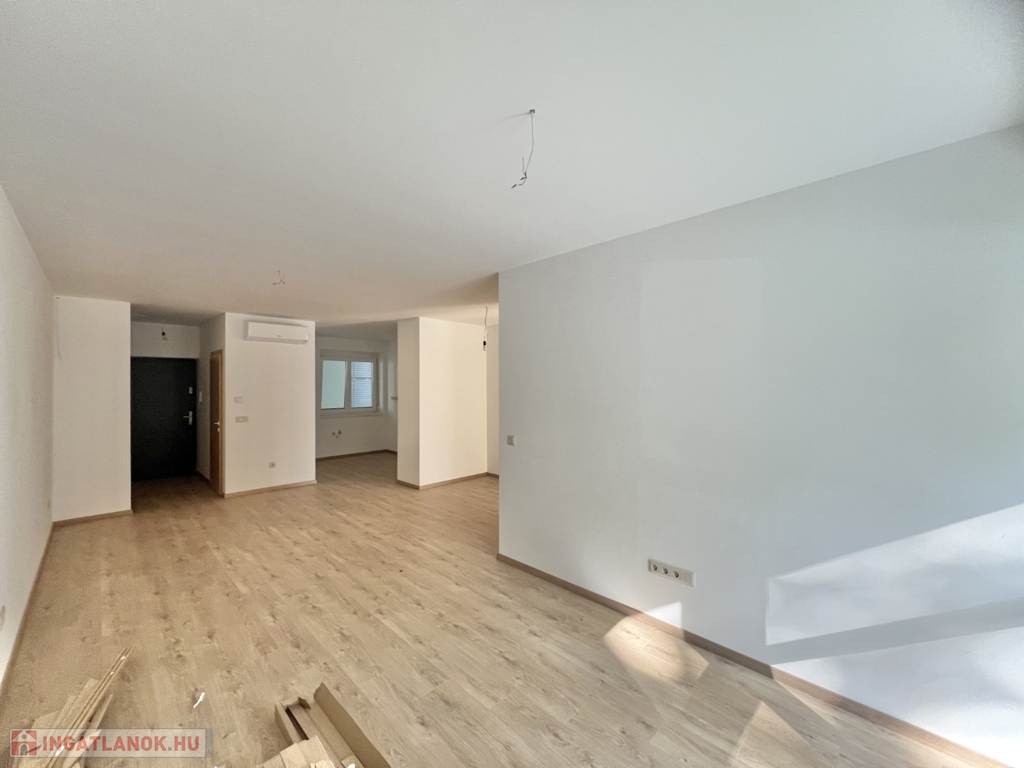 Kaposváron a belvárosban, a Dési Huber utcában - a kórház közelében - igényes kivitelben épült, modern architektúrájú 30 lakásos, új társasház földszintjén, 80 m2-es lakás, 12 m2-es terasszal együtt eladó. A lakásban nappali-étkező-konyha, 2 szoba, közlekedő, szélfogó, fürdőszoba, wc helyiségek kerültek kialakításra. Az épület korszerű energetikájú, a lakás fűtés levegő-víz hőszivattyús Nibe fűtésrendszerrel - padlófűtéssel, a fürdőszobában elektromos törölközőszárító radiátorral - van megoldva, továbbá a lakás hűtése fan-coil Gree rendszerrel történik. A lakás fűtéséhez, vagy hűtéséhez szükséges villamosenergiát az épület tetején elhelyezett napelemek biztosítják, a társasházban központi vízlágyító berendezés is beszerelésre került. A fürdőszobában magas minőségű Wellis szerelvények kerültek beszerelésre. A lakáshoz igény esetén 3.000.000.- Ft-ért az épület zárt udvarában 1 személyautó részére parkolóhely megvásárolható! Az ingatlan megvásárlásához CSOK igényelhető!