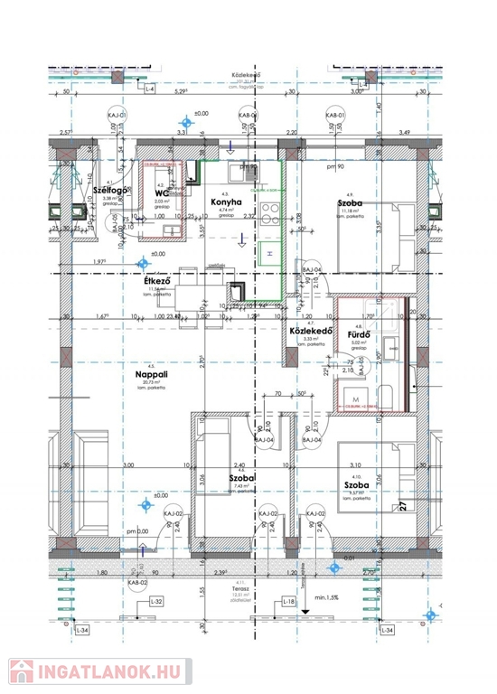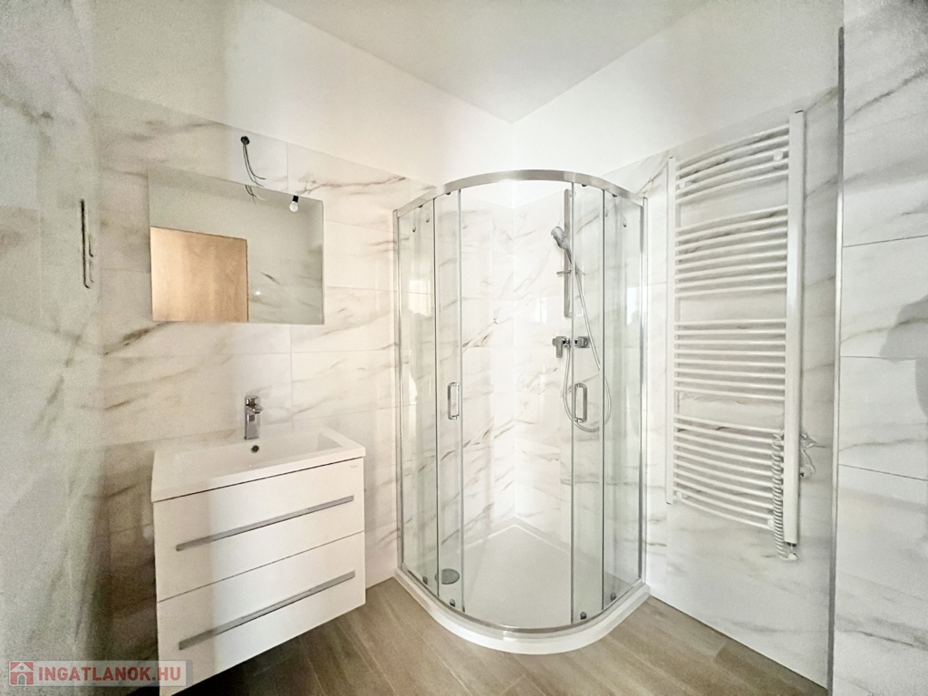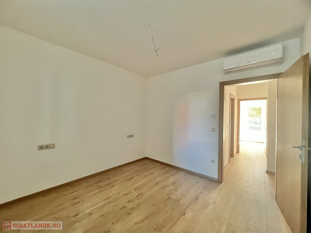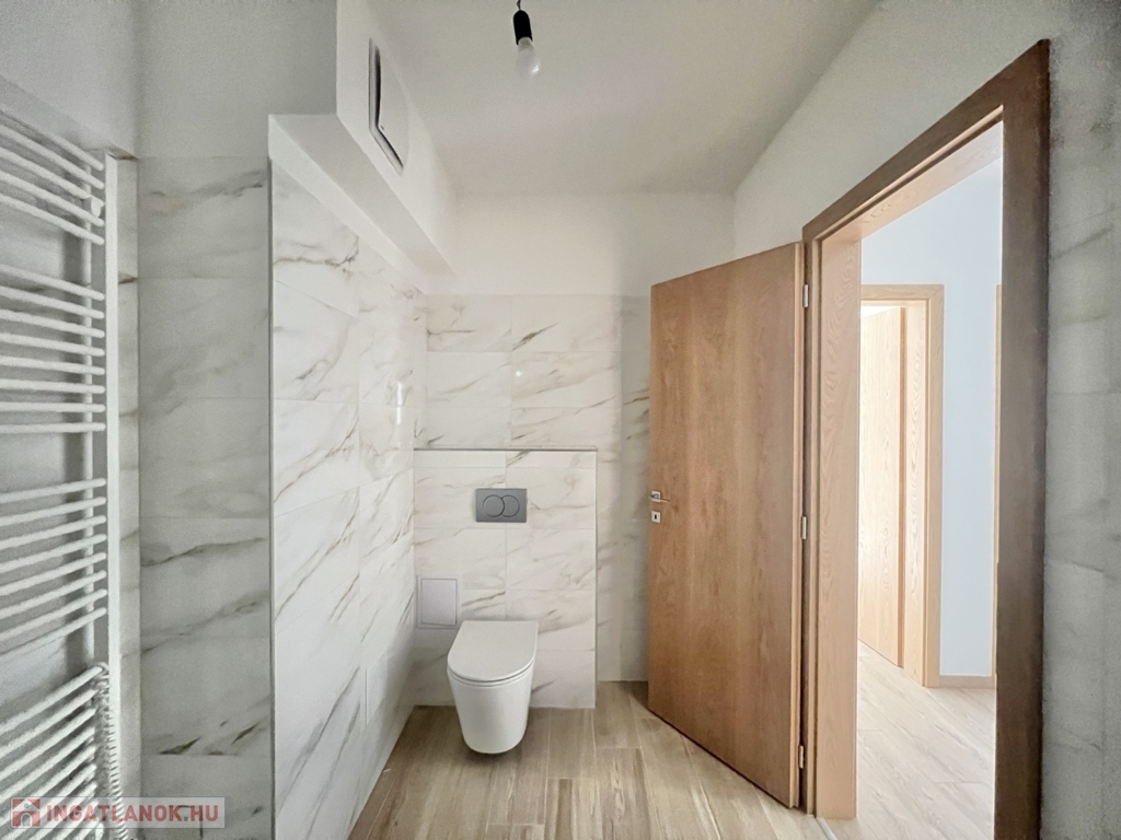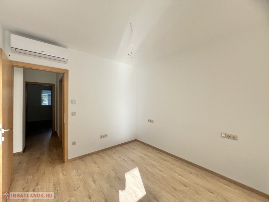 Kaposváron a belvárosban, a Dési Huber utcában - a kórház közelében - igényes kivitelben épült, modern architektúrájú 30 lakásos, új társasház földszintjén, 80 m2-es lakás, 12 m2-es terasszal együtt eladó. A lakásban nappali-étkező-konyha, 2 szoba, közlekedő, szélfogó, fürdőszoba, wc helyiségek kerültek kialakításra. Az épület korszerű energetikájú, a lakás fűtés levegő-víz hőszivattyús Nibe fűtésrendszerrel - padlófűtéssel, a fürdőszobában elektromos törölközőszárító radiátorral - van megoldva, továbbá a lakás hűtése fan-coil Gree rendszerrel történik. A lakás fűtéséhez, vagy hűtéséhez szükséges villamosenergiát az épület tetején elhelyezett napelemek biztosítják, a társasházban központi vízlágyító berendezés is beszerelésre került. A fürdőszobában magas minőségű Wellis szerelvények kerültek beszerelésre. A lakáshoz igény esetén 3.000.000.- Ft-ért az épület zárt udvarában 1 személyautó részére parkolóhely megvásárolható! Az ingatlan megvásárlásához CSOK igényelhető!