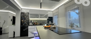 -egyedi magasfényű konyha minőségi gépekkel, konyha szigettel