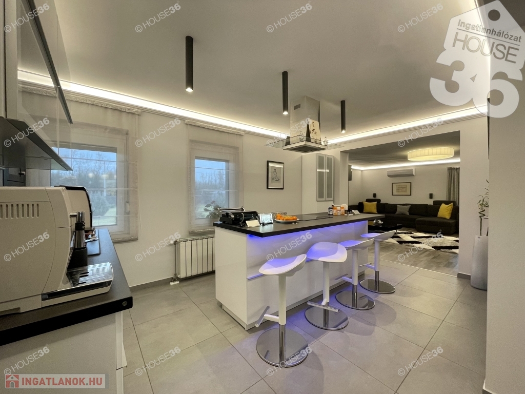 Kecskeméten, Belsőnyír kedvelt részén, 2002-ben épült, de 2018-ban újjágondolt és átépített, luxus minőségű, 4300 m2-es telken, 239 m2-es, nappali+ 4 szoba+ 2 fürdőszobás, minden igényt kielégítő családi ház számtalan extrával eladó!