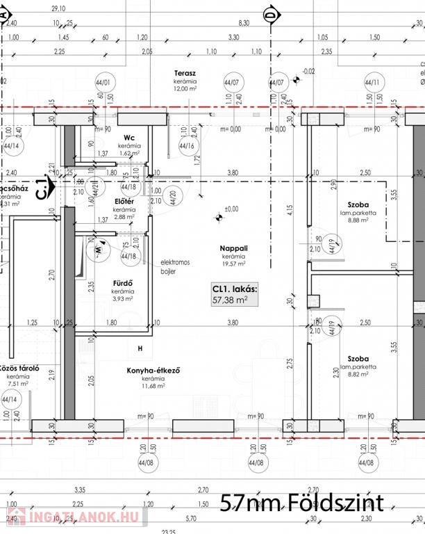 Terasz, Erkély: 3 m²-es, az emeleti lakáshoz tartozó, terasz a földszinti lakásokhoz.