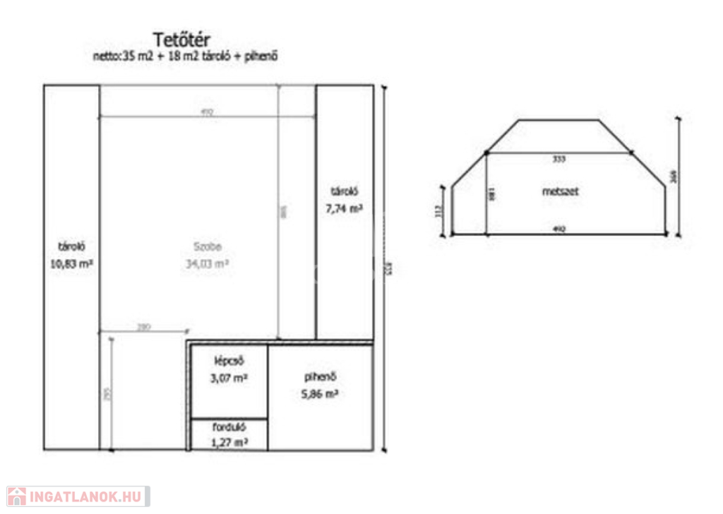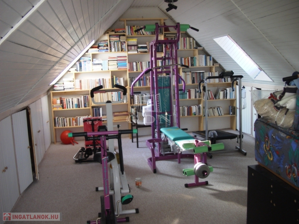 - A tetőtér jelenleg konditeremként funkcionál, kétoldalt további tárolóhelyiségekkel.