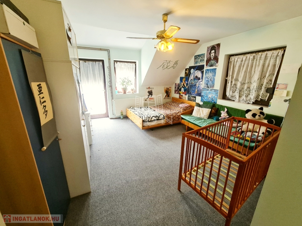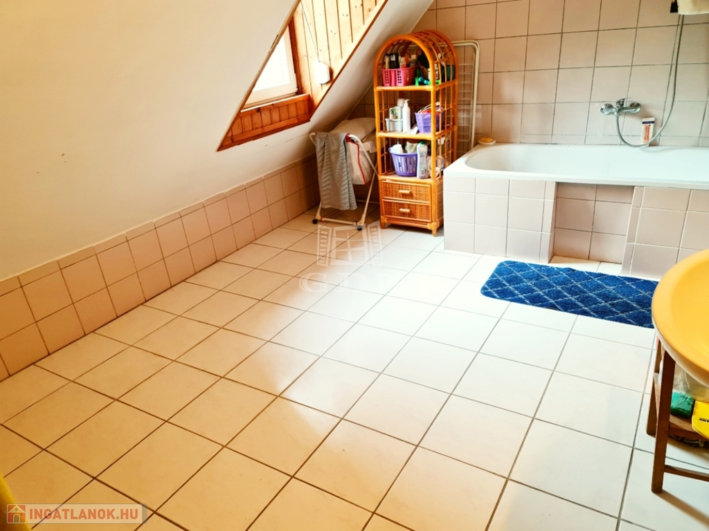 - Ezen a szinten található még egy tágas fürdőszoba, külön mosdó és közlekedő, ahonnan lépcső vezet a tetőtérbe.