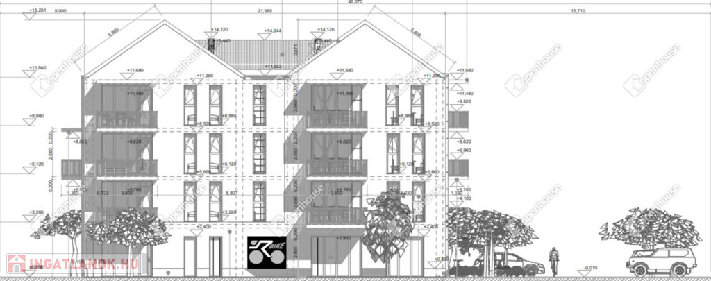 Komáromban épülő új 15 lakásos társasház mely 43nm-67nm-es kialakításúak, 15 tároló egységgel, erkéllyel (egy lakás két erkélyes kivitelezésű)és kültéri térfelszíni gépjármű parkolóval tervezett ingatlan a város központhoz közeli zöldövezeti részén helyezkedik el.