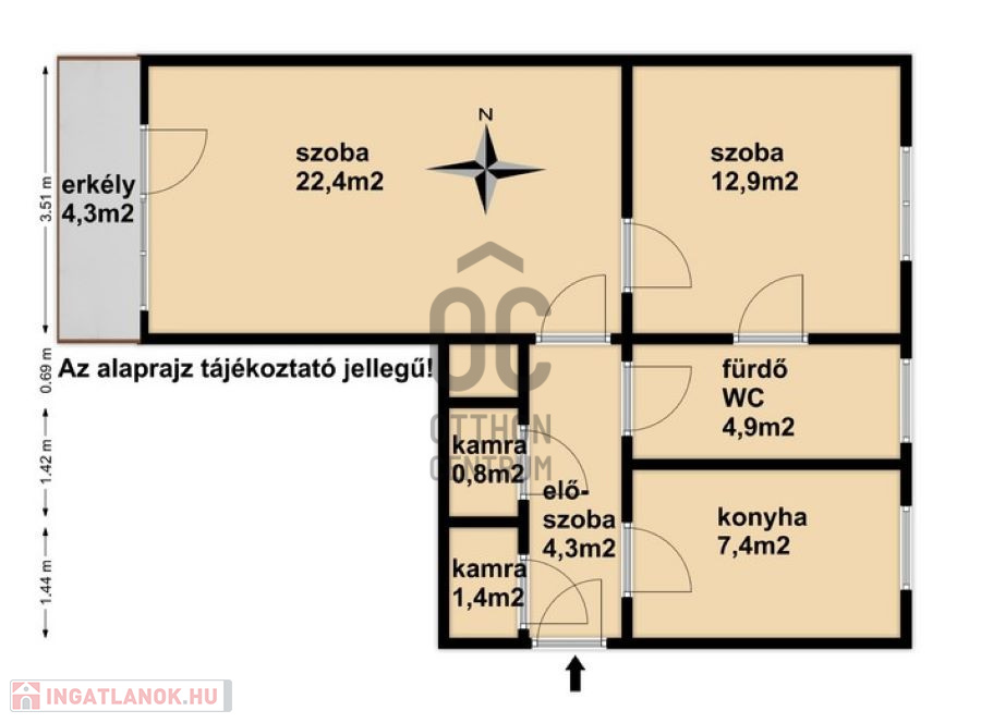 - Alapterülete 56 m2.