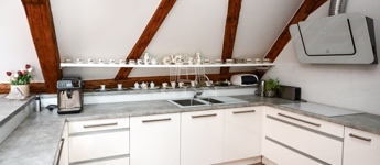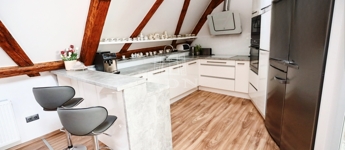 • Egyedi beépített konyha, kiváló minőségű konyhagépekkel