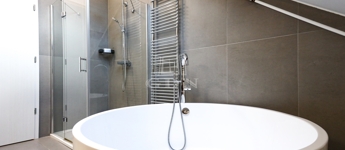 A lakás két fürdőszobával, külön WC-vel, nagy gardróbbal, hatalmas plafonigérő beépített szekrényekkel és terasszal is rendelkezik, utóbbi tökéletes helyszíne lehet egy reggeli kávénak vagy esti kikapcsolódásnak.